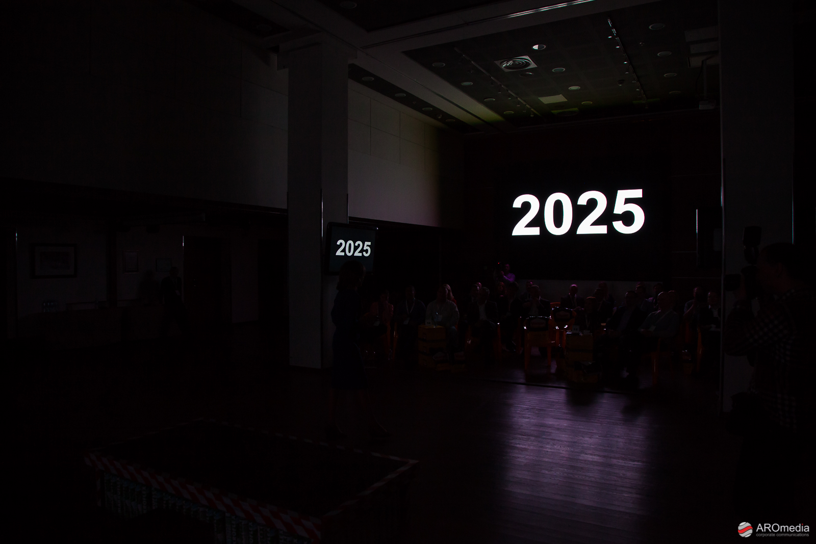 | | Внезапно в зале наступает полнейшая темнота… Только голос спикера, пульсирующие цифры далекого 2025 года на экране и тревожные звуки из динамиков. Жуть? Еще какая! Зато все запомнили чего ждать в 2025 году!